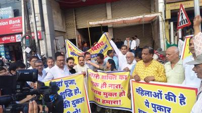 मंदाकिनी चौराहा पर शराब दुकान के खिलाफ फूटा गुस्सा, रहवासियों का जोरदार प्रदर्शन