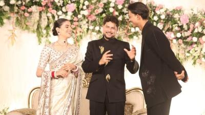 शाही अंदाज में कुलदीप-वंशिका का रिसेप्शन, विंटेज कार से ग्रैंड एंट्री