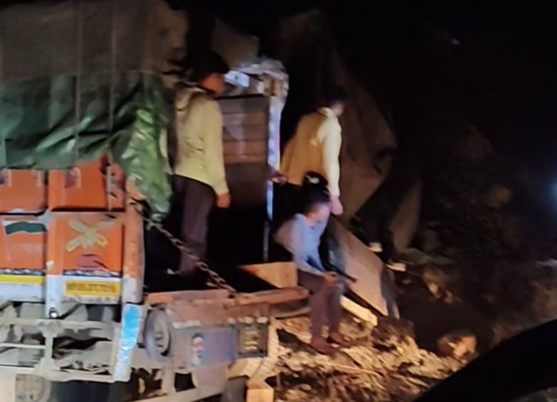 सड़क पर शराब से भरा ट्राला पलटा, लूट मचाने पहुंची भीड़ ने पुलिस पर किया पथराव