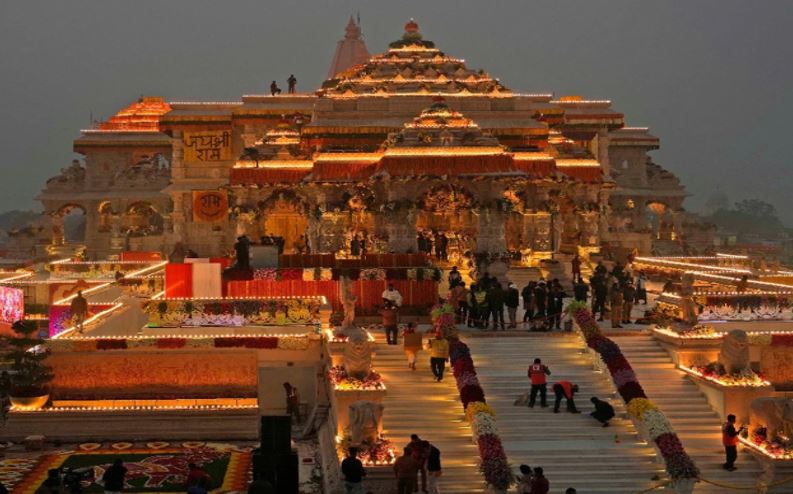 धार्मिक और सांस्कृतिक माहौल में डूबी अयोध्या को आकर्षक रोशनी, फूलों और भव्य रंगोलियों से सजाया जा रहा है। हर ओर भक्तों की भीड़ और जयकारों का माहौल है। सुबह-शाम राम धुन और मंत्रोच्चार की गूंज से वातावरण पावन हो उठा है।